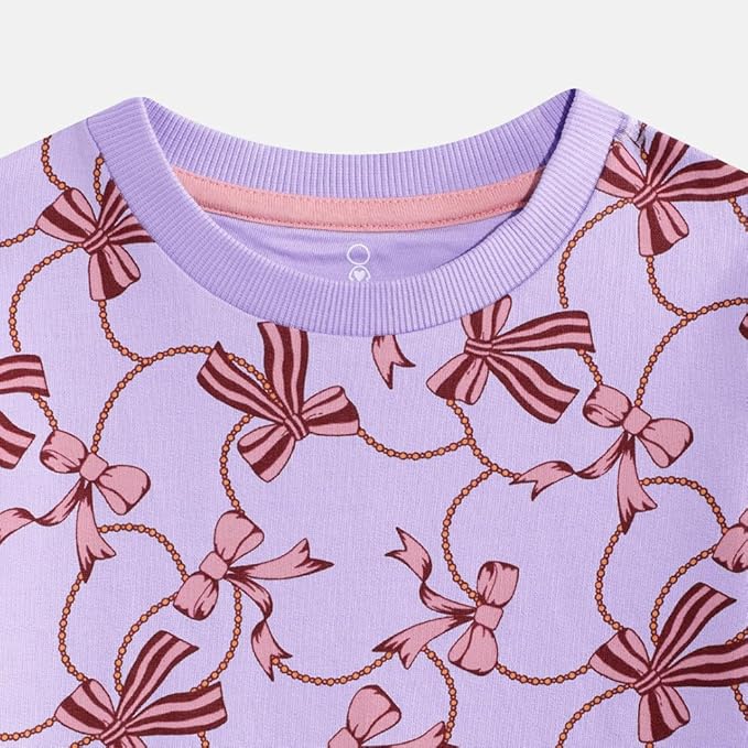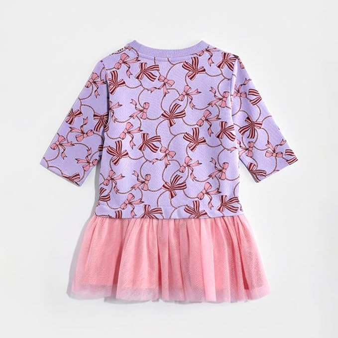 Mothercare Girls Heart and Bow Printed Full Sleeves Dress - Lavendar