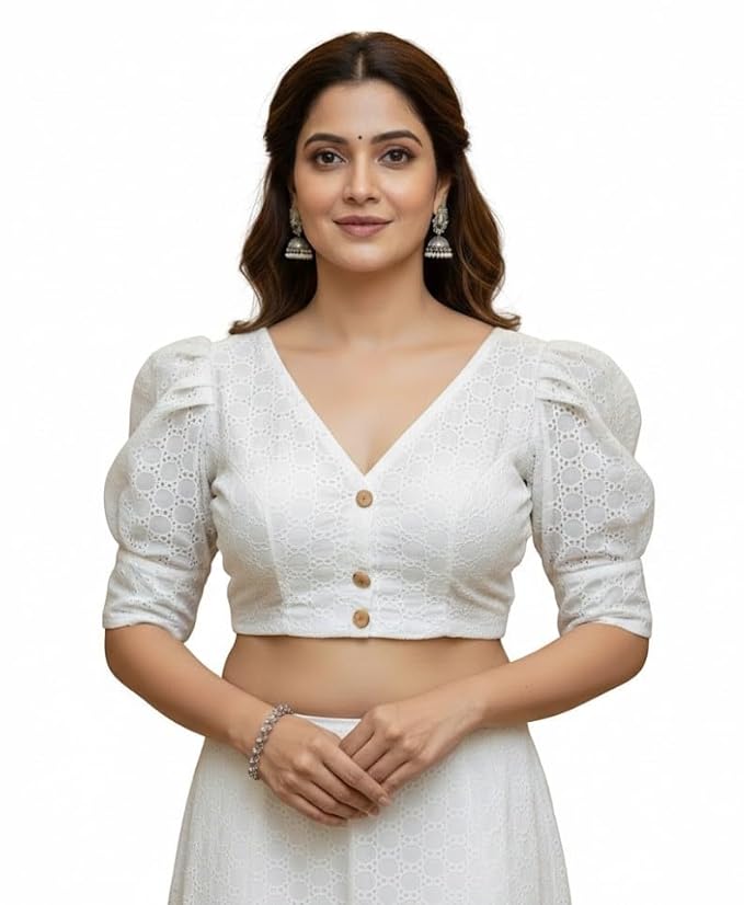 Stylish Design Features: Features V-neck design with puff sleeves and intricate Hakoba Sifly work that enhances the overall appearance